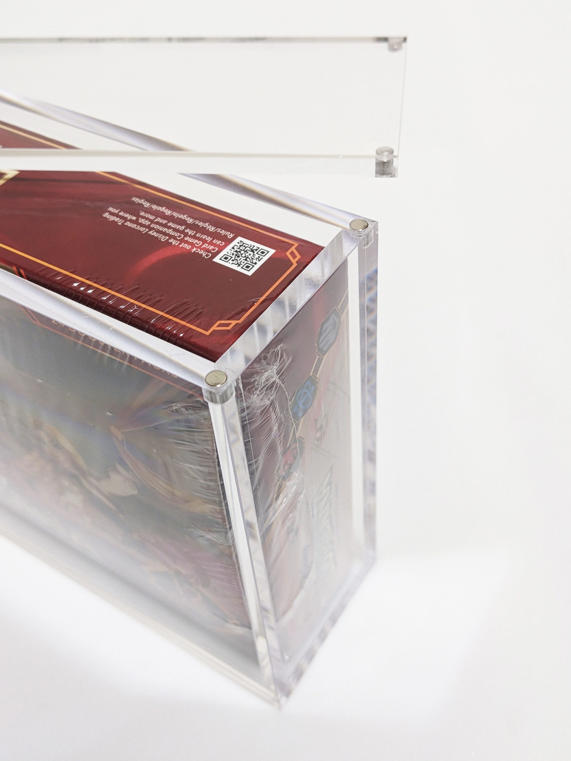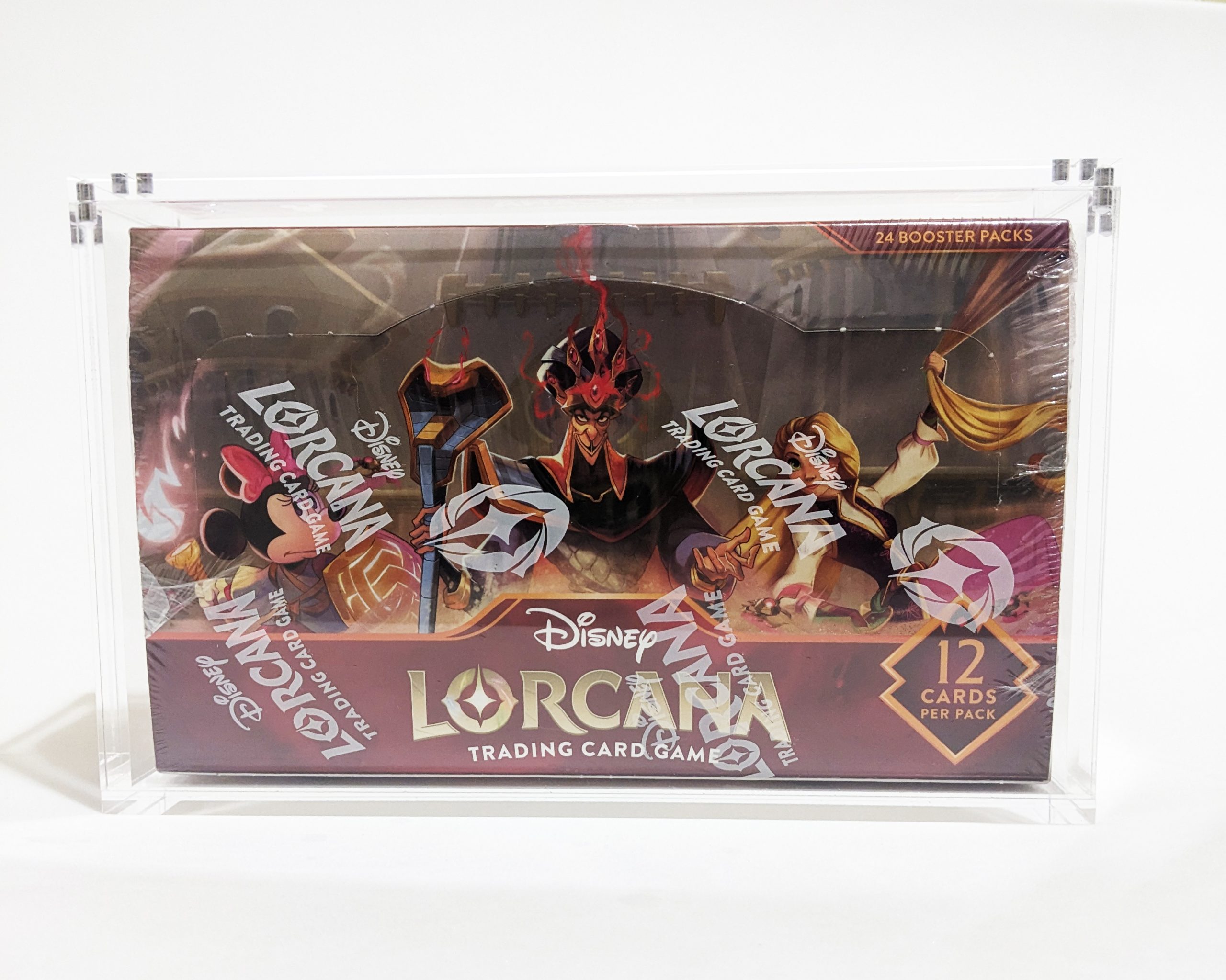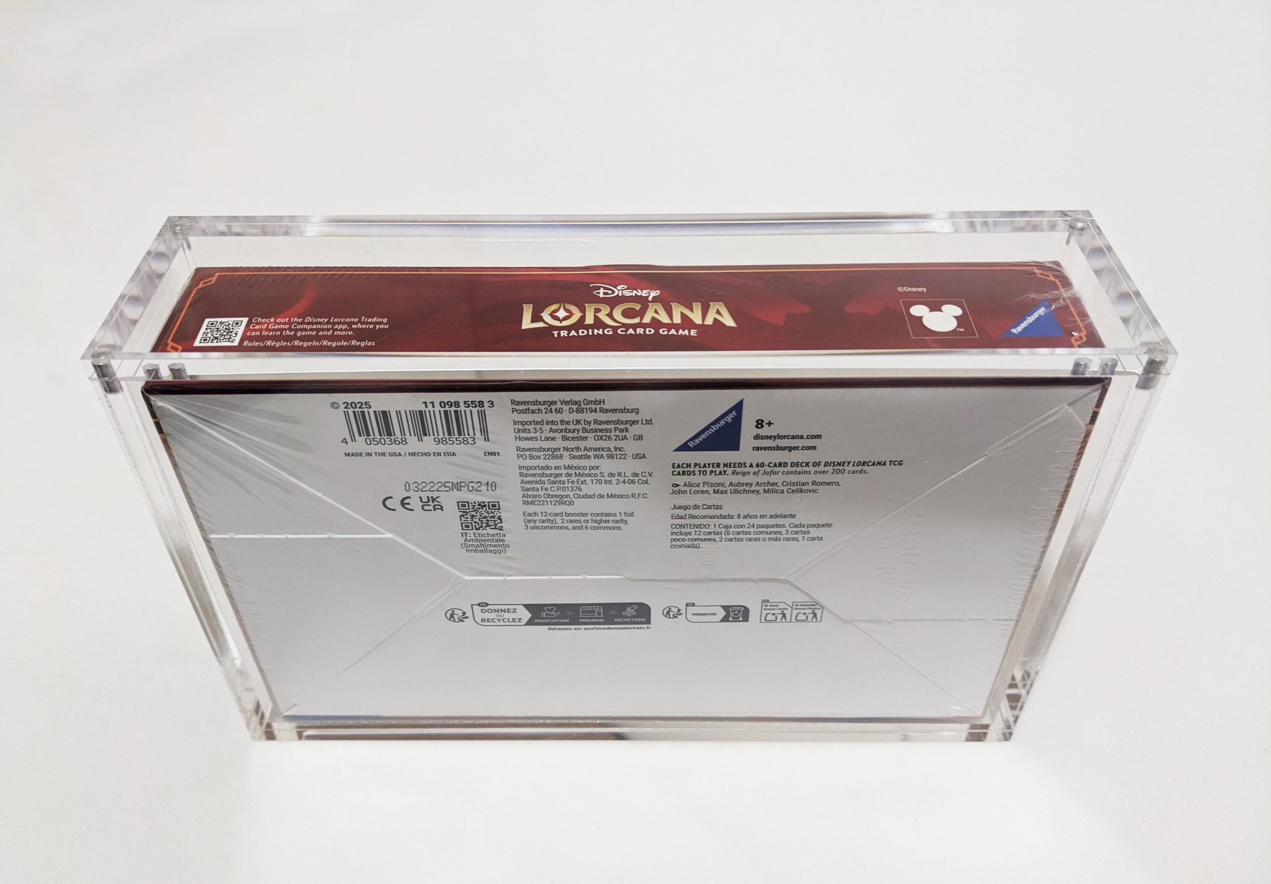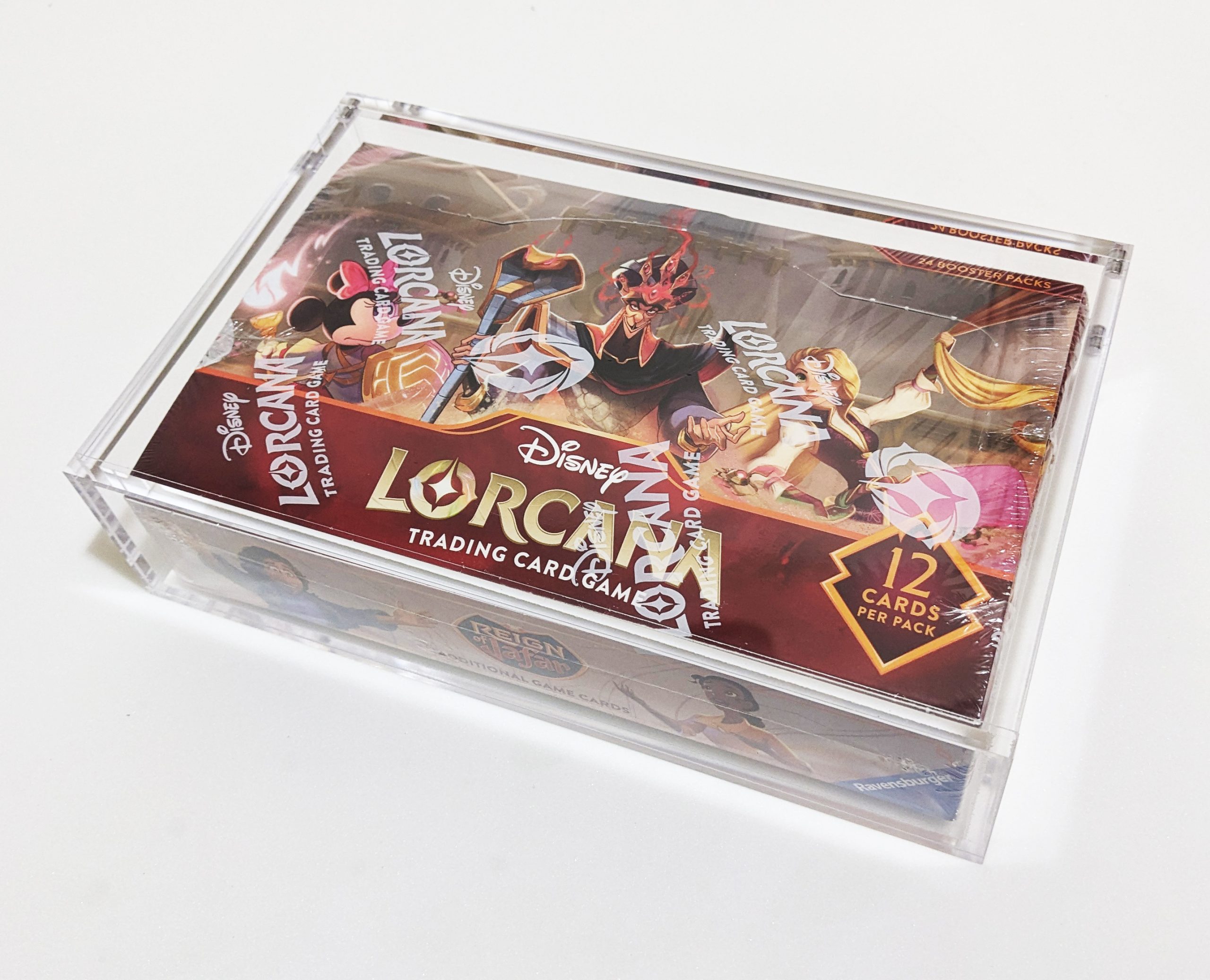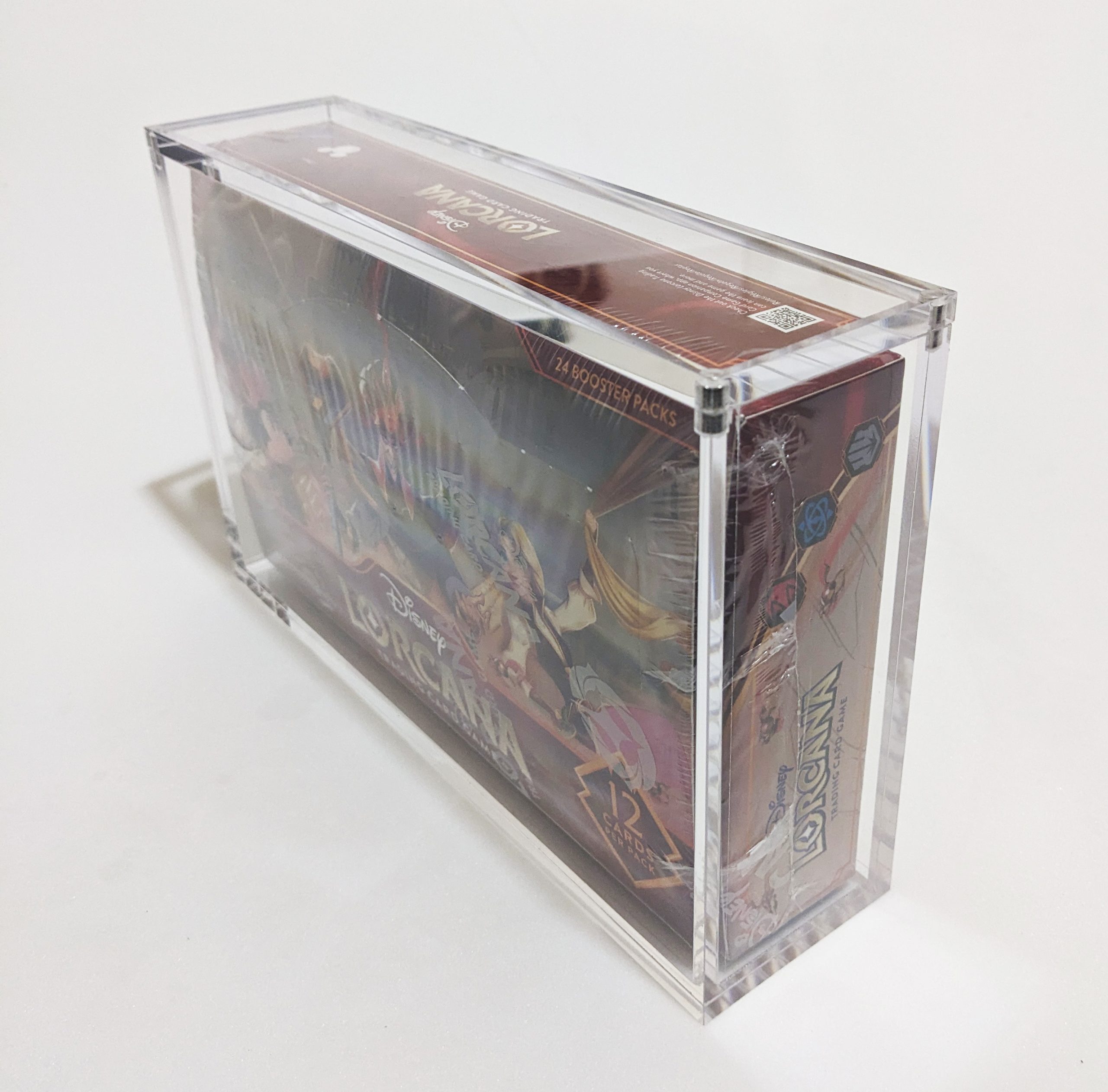 Our acrylic cases are the perfect protection for the Disney Lorcana booster boxes in your collection! Each wall is 6mm acrylic with a 6mm lid that features 4 strong magnets to keep your booster box protected and free from dust. Please note, the booster box displayed in photos is not included.