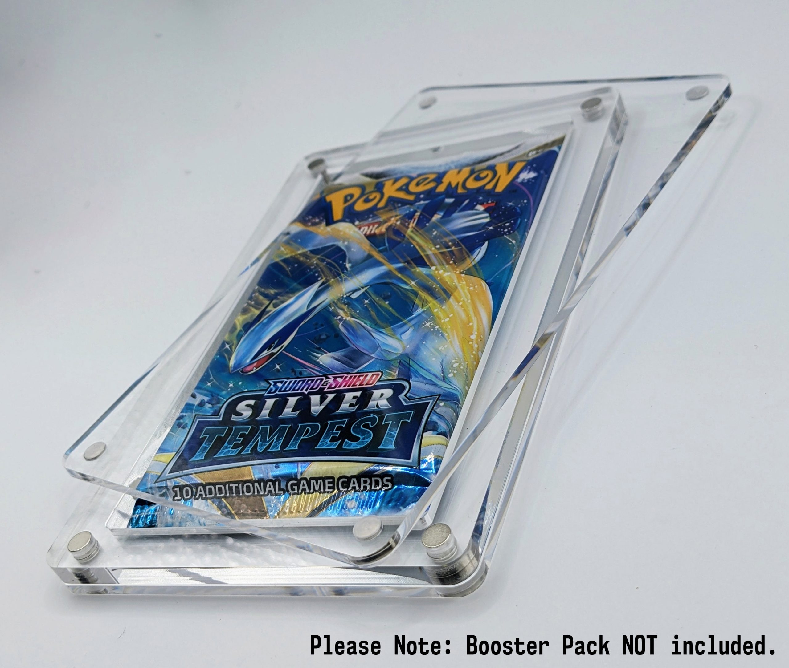 Our acrylic cases are the perfect protection for the sealed Pokemon booster pack(s) in your collection! Each side is 3mm thick acrylic with and features 4 strong magnets to keep your booster pack protected and free from dust. Simply pull one side off, lay your booster pack into the cut out area of the middle piece, and put the side you removed back on for a strong magnetic closure. These cases also work great when you want to display the booster packs in your collection! Please note, the booster pack displayed in photos is not included.