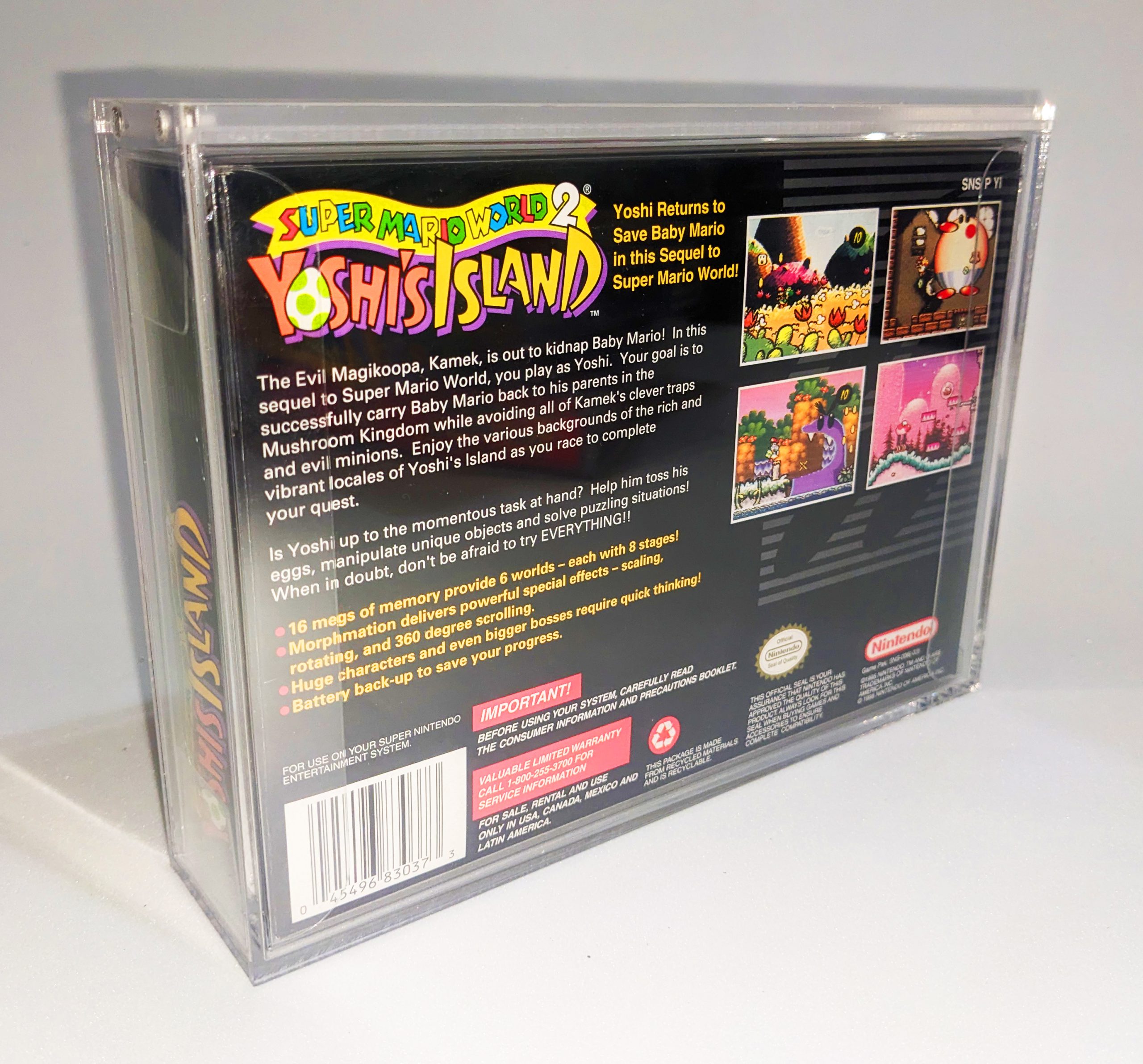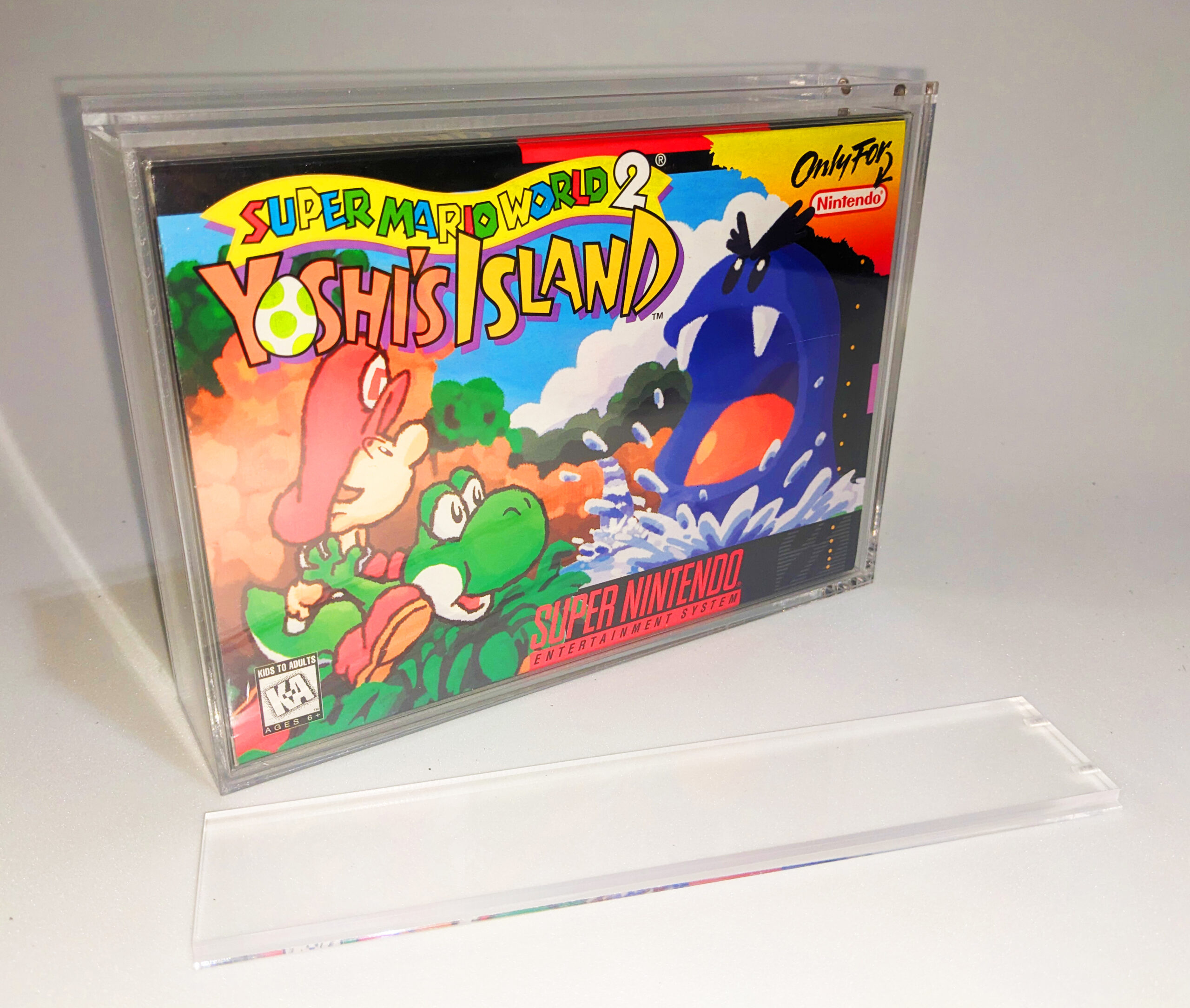 Our acrylic cases are the perfect protection for the SNES boxes in your game collection! Each wall is 3mm acrylic with a 5mm sliding lid that features 2 strong magnets to keep your original box protected and free from dust. Please note, the game box displayed in photos is not included.